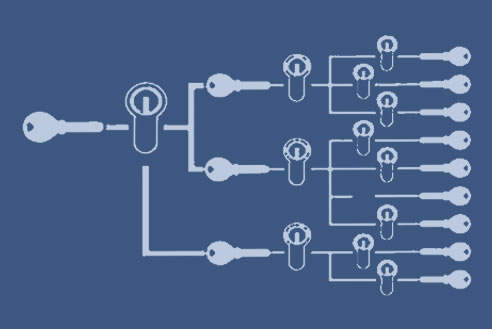 • Amaestramiento cruzado: En este sistema una llave maestra o grupo de ellas puede abrir una o varias puertas de grupos diferentes. Este es un sistema complejo de cierre con lo cual es necesario hacer un estudio exhaustivo.